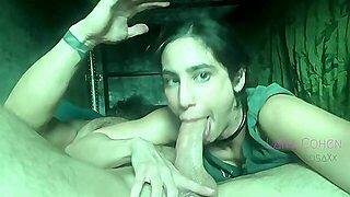 Amateur brunette slut Lana Cohen stuffs big cock down her throat