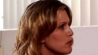 StrapOn Lesbian with big boobs fucks her blonde sexy GF
