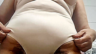Hairy cougar tries on clothes nude. I spy on a sexy hairy pussy huge tits big ass.